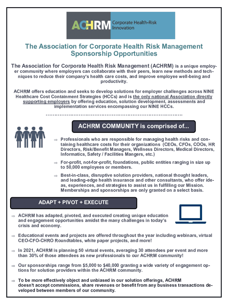 The Association for Corporate Health Risk Management Sponsorship Opportunities The Association for Corporate Health Risk Management (AC HRM) is a unique employer community where employers can collaborate
