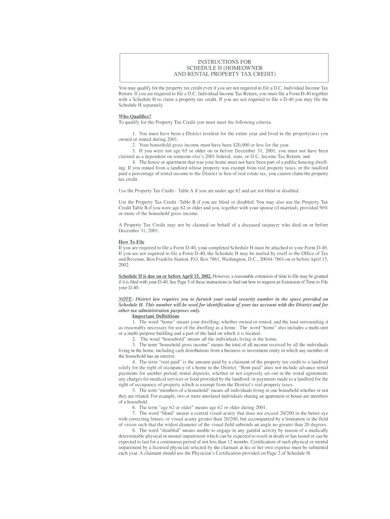 You may qualify for the property tax credit even if you are not required to file a D.C. Individual Income Tax