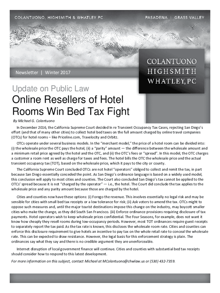 InDecember2016,theCaliforniaSupremeCourtdecidedInreTransientOccupancyTaxCases, rejectingSanDiegos