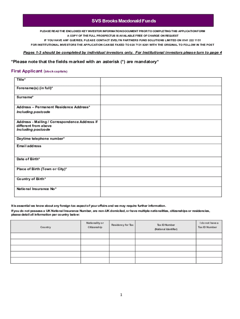 VS Brooks Macdonald Funds PLEASE READ THE ENCLOSED KEY INVESTOR INFORMATION DOCUMENT PRIOR TO COMPLETING THIS APPLICATION From A COPY OF THE FULL PROSPECTUS IS AVAILABLE FREE OF CHARGE ON REQUEST