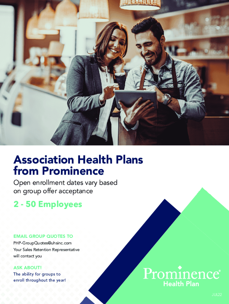 Association Health Plans from Prominence Open enrollment dates vary based on group offer acceptance2 50 EmployeesEMAIL GROUP QUOTES TO PHPGroupQuotes@uhsinc.com Your Sales Retention Representative
