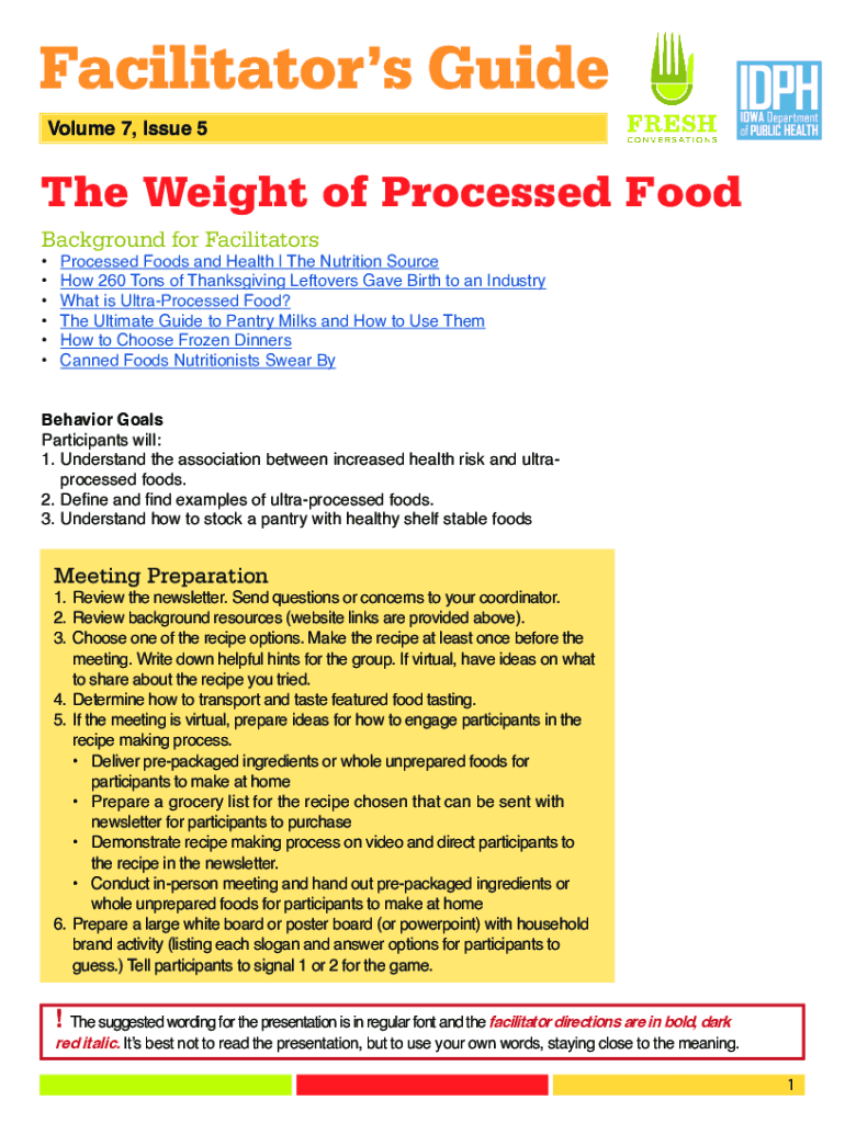 Facilitators Guide Volume 7, Issue 5The Weight of Processed Food Background for Facilitators Processed Foods and Health | The Nutrition Source How 260 Tons of Thanksgiving Leftovers Gave Birth to