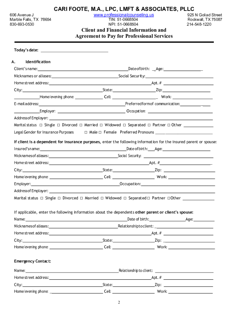 INSTRUCTIONS FOR COMPLETION OF ADOLESCENT PACKET Guardian/Parent is to complete pages 215. This includes the Client Information form with permission to treat, Client Rights, Confidentiality, Child