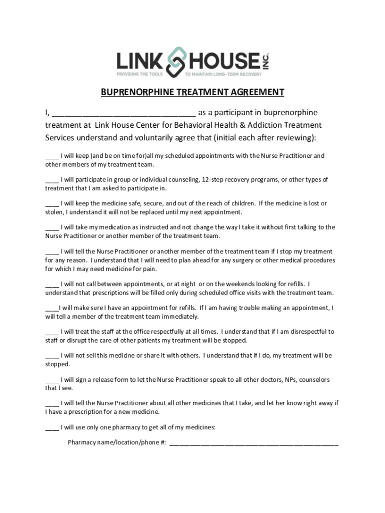 TREATMENT AGREEMENT I, ___ as a participant in treatment at Link House Center for Behavioral Health & Addiction Treatment Services understand and voluntarily agree that (initial each after reviewing):