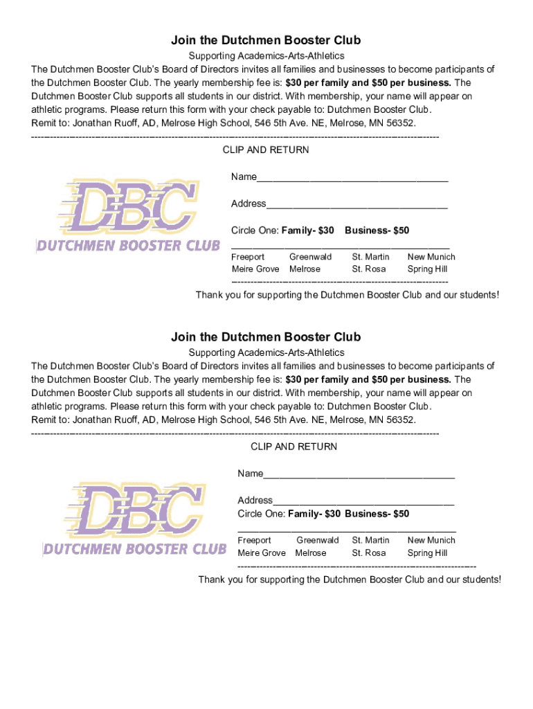 Join the Dutchmen Booster Club Supporting AcademicsArtsAthletics The Dutchmen Booster Clubs Board of Directors invites all families and businesses to become participants of the Dutchmen Booster Club.
