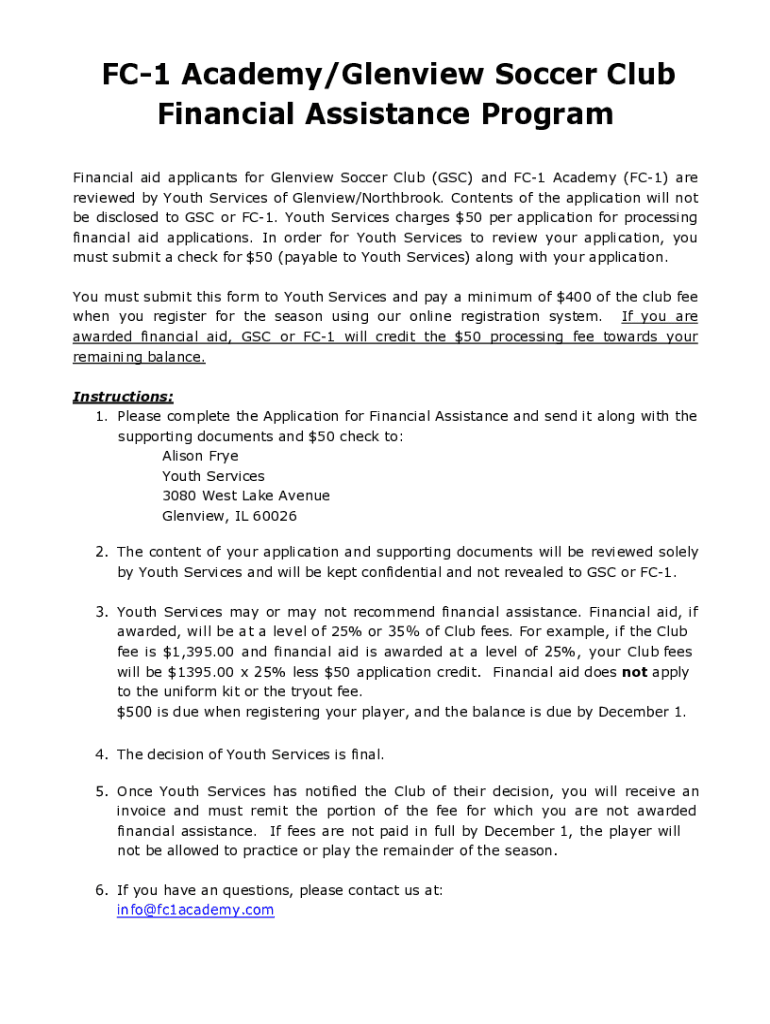 Get the free FC-1 Academy/Glenview Soccer Club Financial Assistance ...