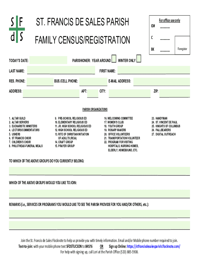 Get the free New Parishioner Registration Form - St. Francis de Sales Parish