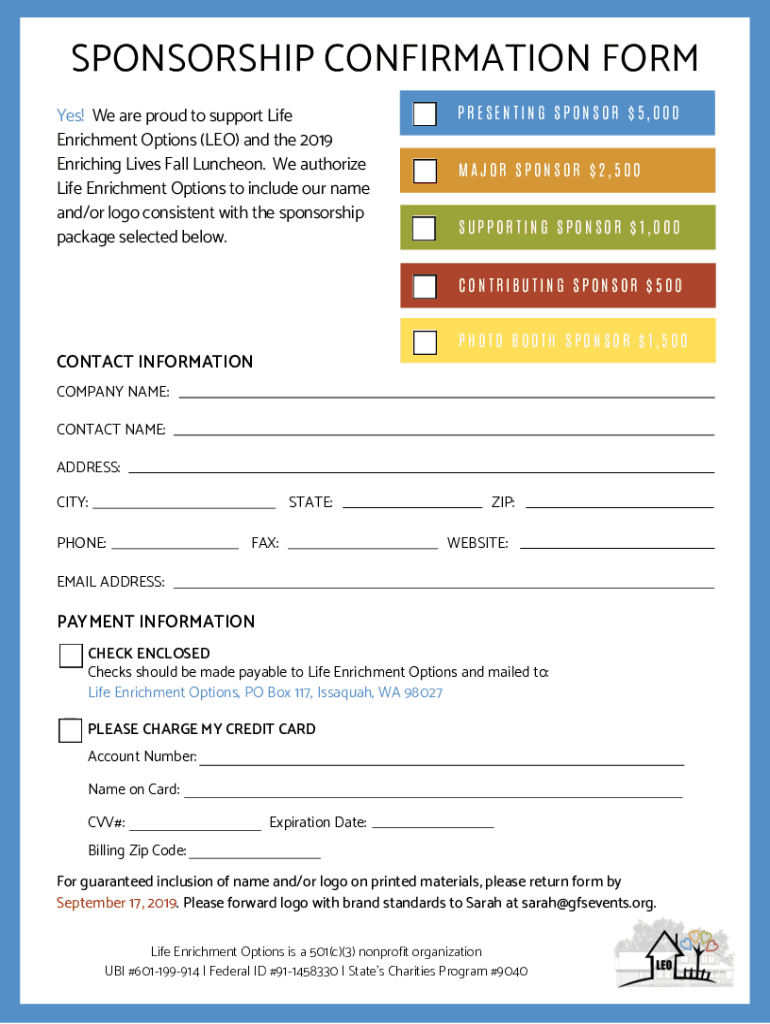 Fill out your nonprofit sponsorship agreementsponsorship opportunities online with pdfFiller!