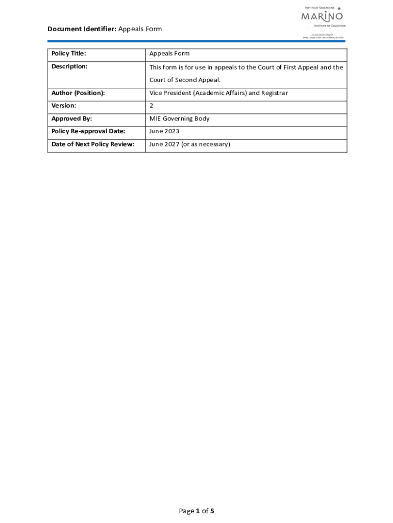 Policy Title:Appeals FormDescription:This form is for use in appeals to the Court of First Appeal and the