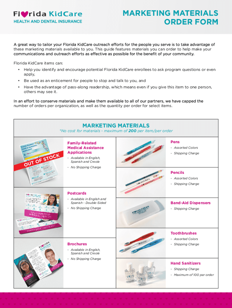 Get the free Florida KidCare Marketing Materials Ordering Form