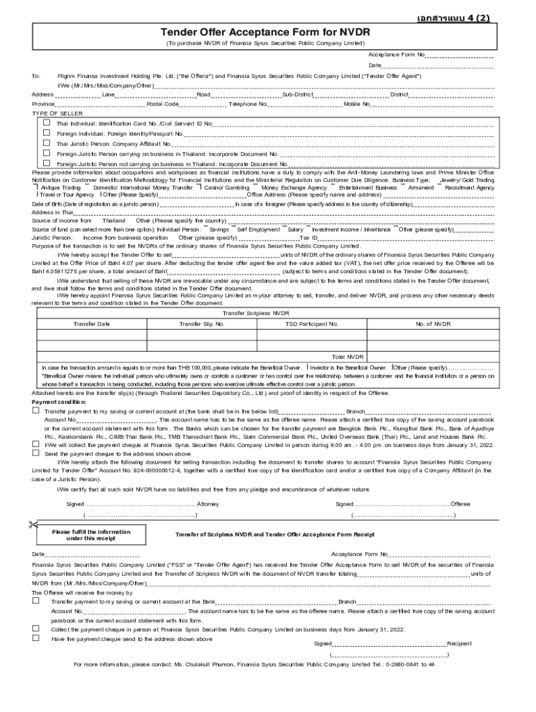 (To purchase NDR of Financial Cyrus Securities Public Company Limited)