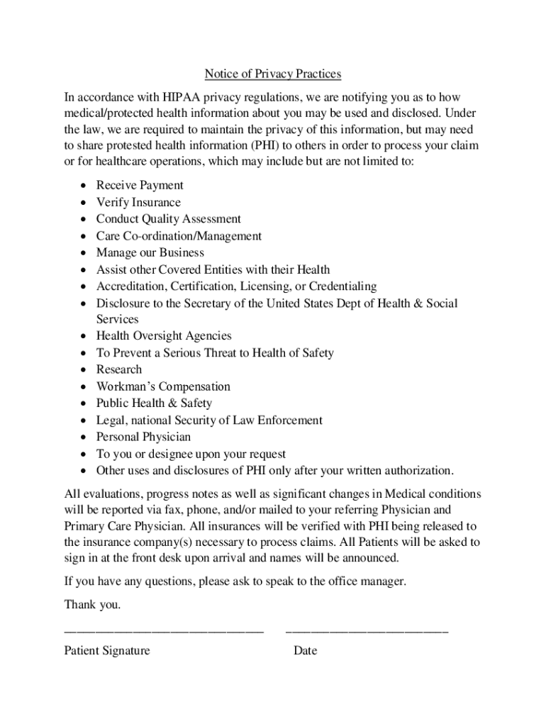 Get the free Notice of Privacy Practices In accordance with HIPAA ...