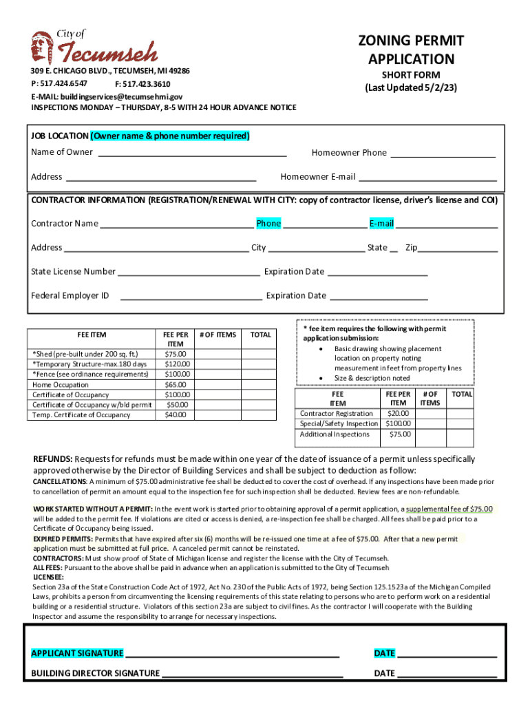 (Last Updated 5/2/23)EMAIL: buildingservices@tecumsehmi.gov