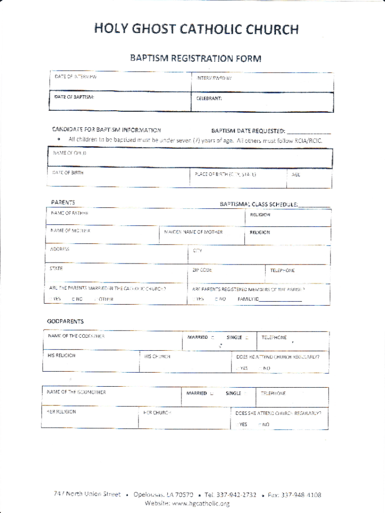 DATE OF INTER! Interviewed DATE OF BAPTISM:CELEBRANT:Candidate FOR ts APT[SM INFORMATIONoFORf, V?BAPTISM DATE Ali chiidrentobebaptizedmustbeunderseven(7)REAL