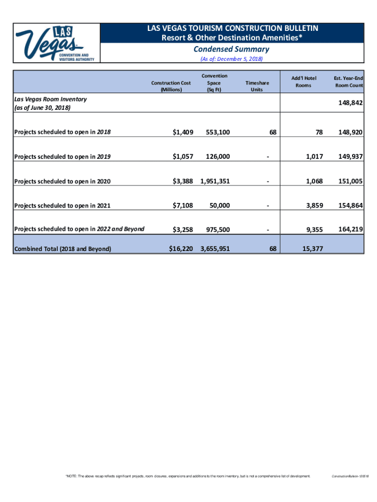 LAS VEGAS TOURISM CONSTRUCTION BULLETIN