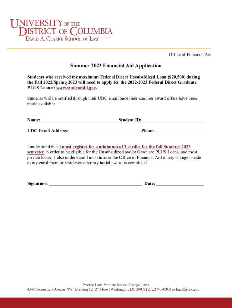 Get the free Financial Aid in the Summer - law udc