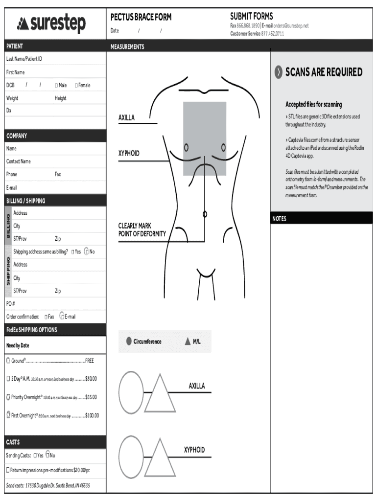 This form is typically used by patients who are prescribed a pectus brace as part of their treatment plan.