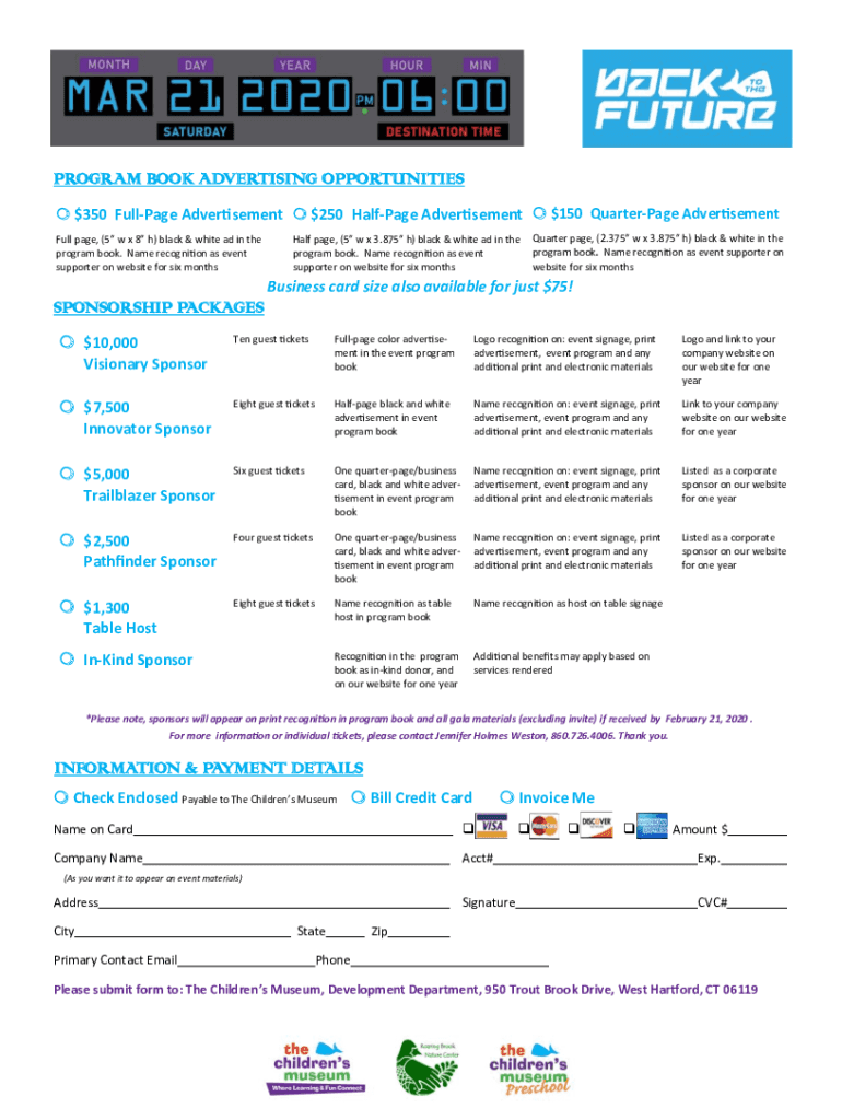 PROGRAM BOOK ADVERTISING OPPORTUNITIES $350 Full Page Advertisement $250 Half Page Advertisement $150 Quarter Page Advertisement Full page, (5 w × 8 h) black & white ad in the program book. Name