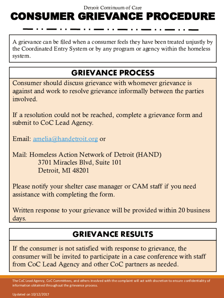 Detroit Continuum of CareCONSUMER GRIEVANCE PROCEDURE