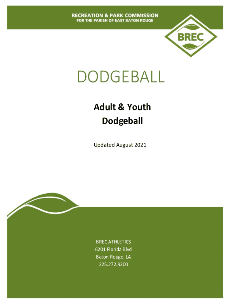 DODGEBALL Adult & Youth Dodgeball Updated August 2021BREC ATHLETICS 6201 Florida Blvd Baton Rouge, LA 225.272.9200THE RECREATION AND PARK COMMISSION FOR THE PARISH OF EAST BATON ROUGE Dear Team Manager,