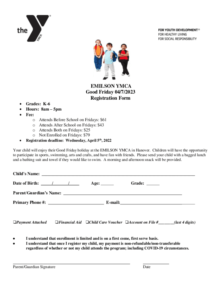 Get the free EMILSON YMCA April Vacation Program Registration Form ...