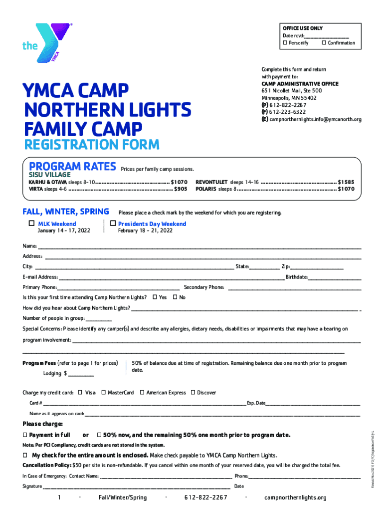OFFICE USE ONLY Date RCD:___ Personify ConfirmationComplete this form and return with payment to: CAMP ADMINISTRATIVE OFFICE 651 Nicollet Mall, Ste 500 Minneapolis, MN 55402 (P) 6128222267 (F) 6122236322