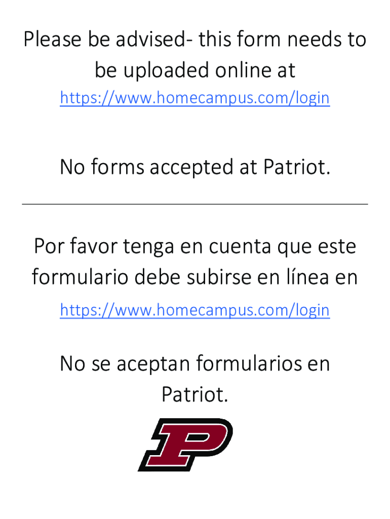 https://www.homecampus.com/loginNo forms accepted at Patriot.