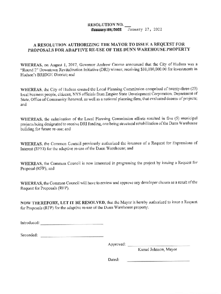CITY OF HUDSONREQUEST FOR PROPOSALS INVESTOR / DEVELOPER ADAPTIVE REUSE FORMER DUNN WAREHOUSECity of Hudson 520 Warren St., Hudson, NY 12534 Issue Date: January xx, 2022 Proposal Due Date: February
