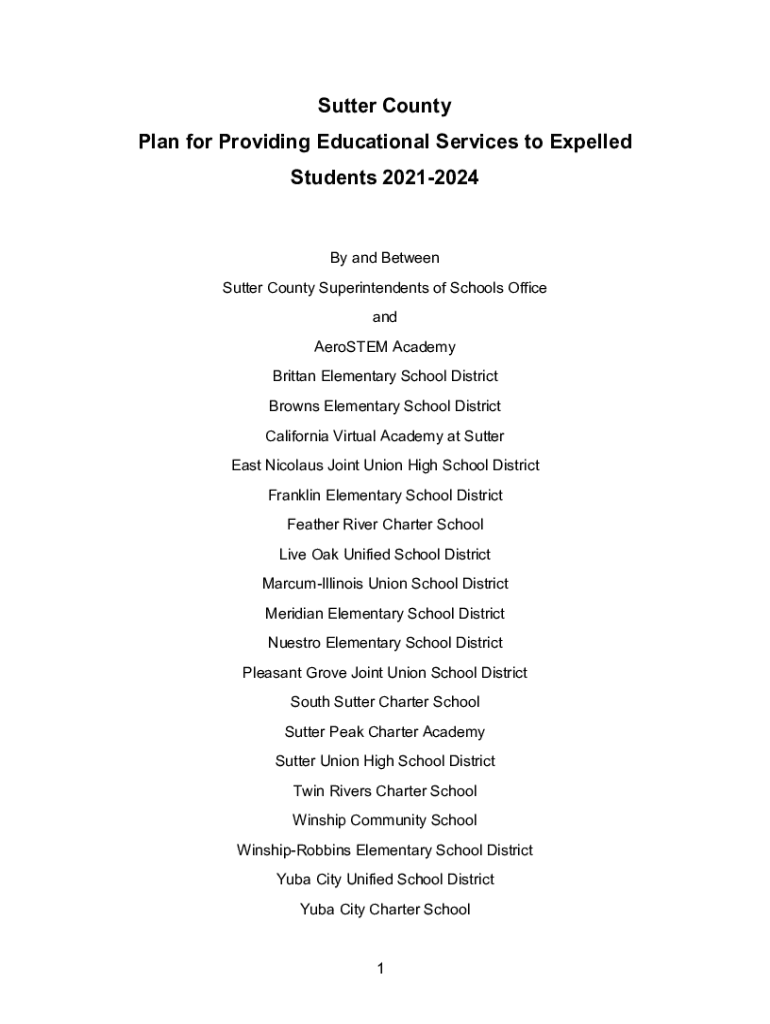 Sutter County Plan for Providing Educational Services to Expelled Students 20212024By and Between Sutter County Superintendents of Schools Office and Meristem Academy Brittany Elementary School District