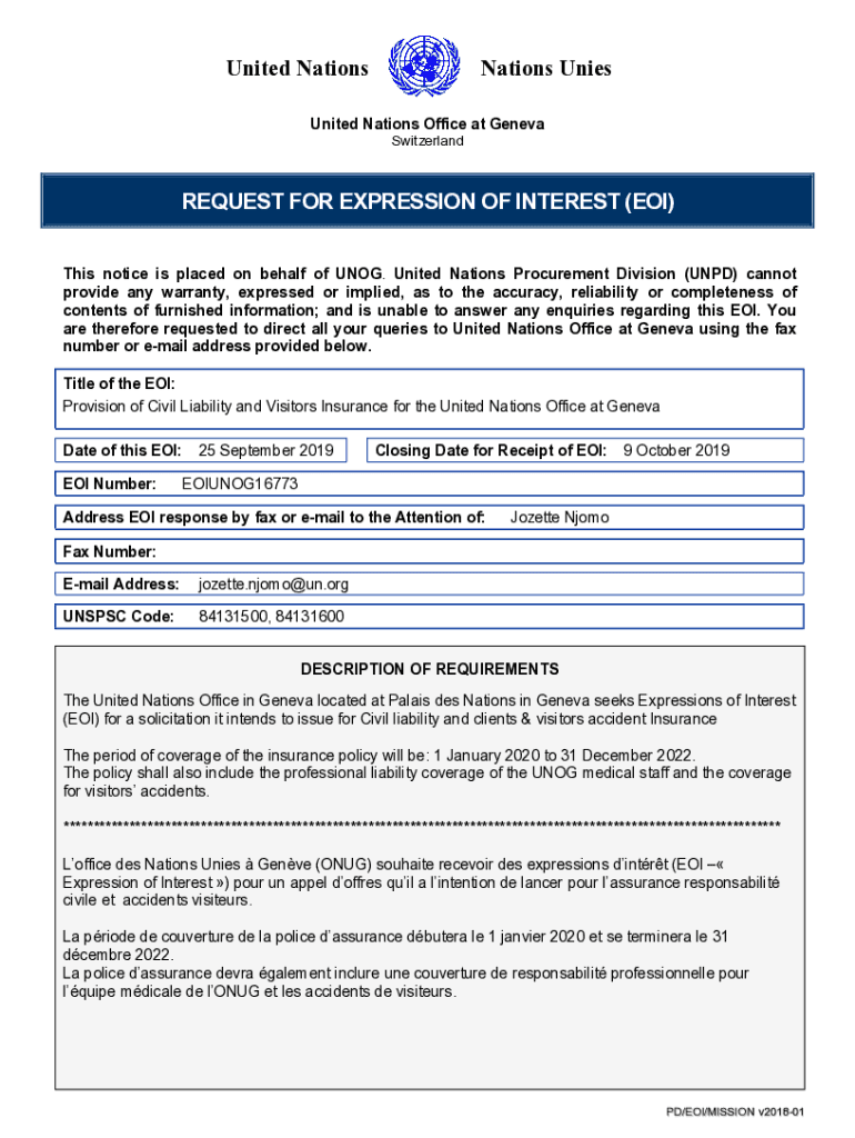 Get the free Provision of Civil Liability and Visitors Insurance for the United Nations Office at...