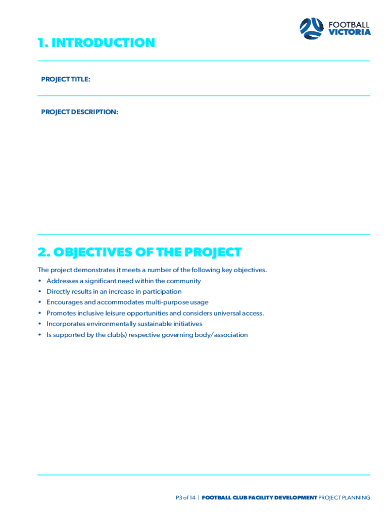 FOOTBALL CLUB FACILITY DEVELOPMENT PROJECT Planning your club logo heritable OF CONTENTS 1. INTRODUCTIONP32.OBJECTIVES OF THE PROJECTProject InnovationProject SupportP3 P 4P43.PROJECT PRIORITY & EVALUATIONP53.1PROJECT