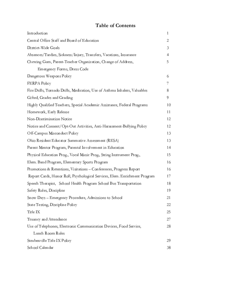 Table of Contents Introduction1Central Office Staff and Board of Education2DistrictWide Goals3Absences/Tarries, Sickness/Injury, Transfers, Vacations, Insurance4Chewing Gum, ParentTeacher Organization,