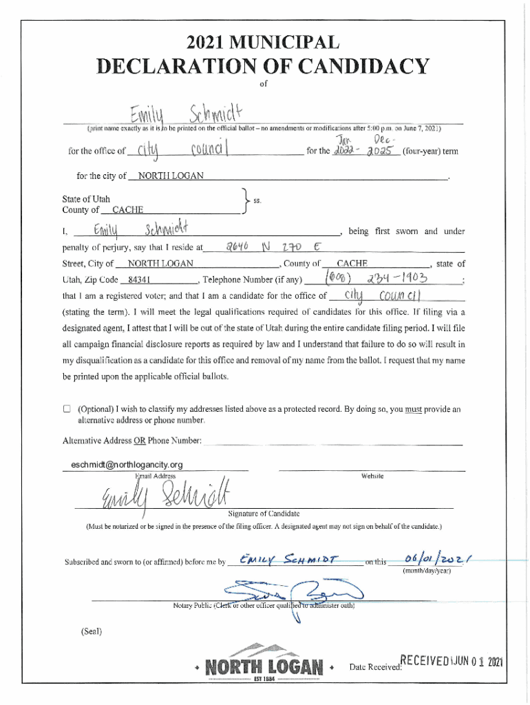 2021 MUNICIPALDECLARATION OF CANDIDACY