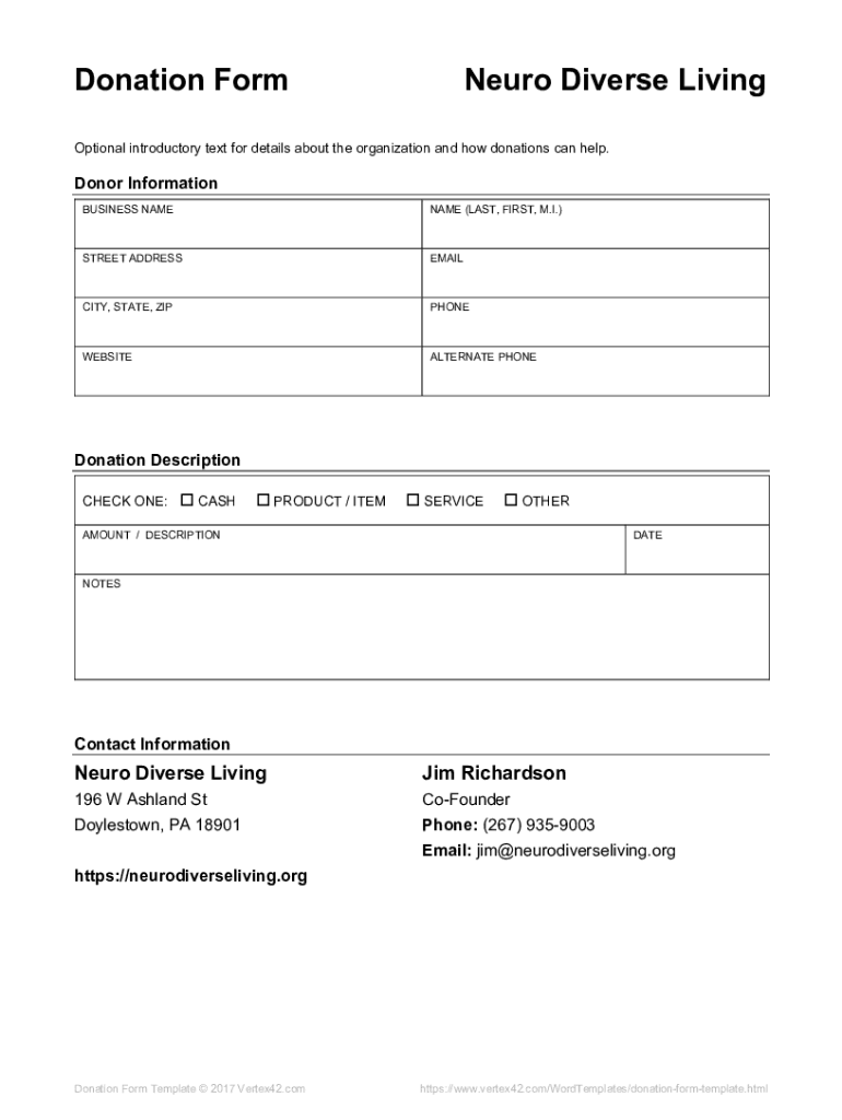 Donation Former Diverse LivingOptional introductory text for details about the organization and how donations can help. Donor Information