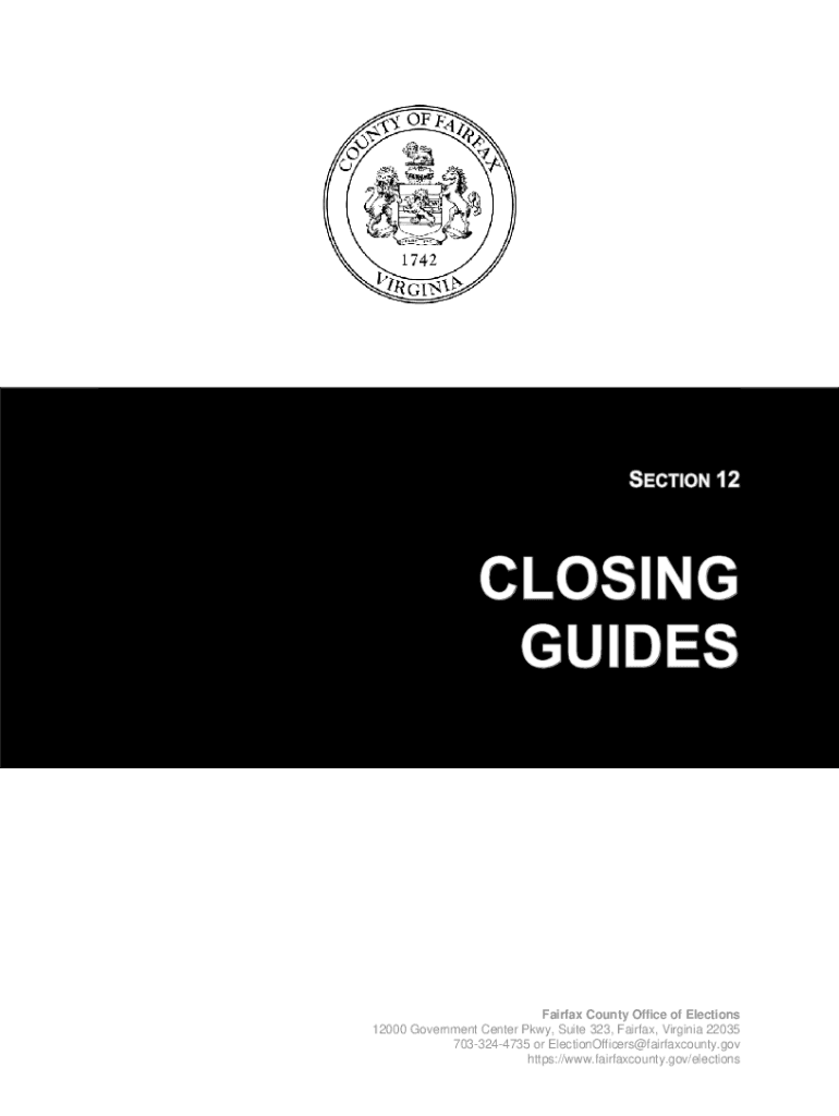 Fairfax County Office of Elections 12000 Government Center Pkwy, Suite 323, Fairfax, Virginia 22035 7033244735 or ElectionOfficers@fairfaxcounty.gov https://www.fairfaxcounty.gov/electionsCLOSING