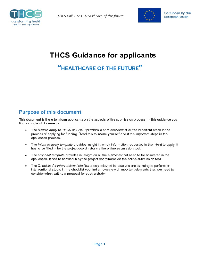 THIS Call 2023 Healthcare of the futures Guidance for applicantsHEALTHCARE OF THE FUTUREPurpose of this document is there to inform applicants on the aspects of the submission process. In this guidance