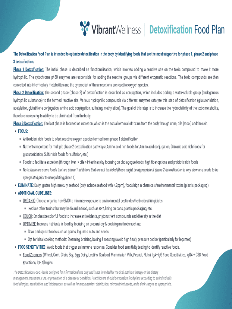 Detoxification Food Plan The Detoxification Food Plan is intended to optimize detoxification in the body by identifying foods that are the most supportive for phase 1, phase 2 and phase 3 detoxification.