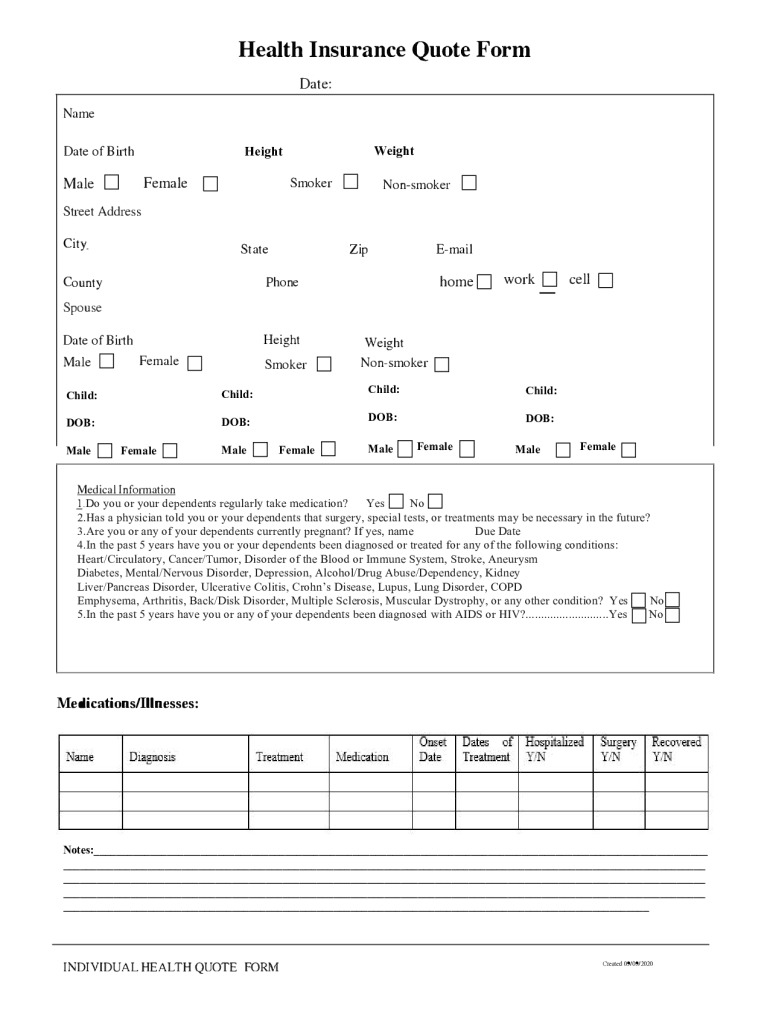 Health Insurance Quote Form