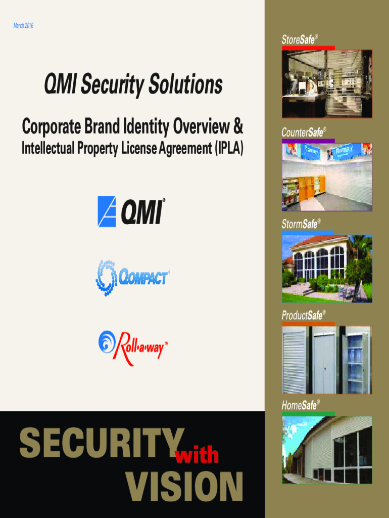 March 2016QMI Security Solutions Corporate Brand Identity Overview intellectual Property License Agreement (IPA)SECURITY with VISION brand name [brand Nam] noun 1.a word, name, symbol, etc., especially