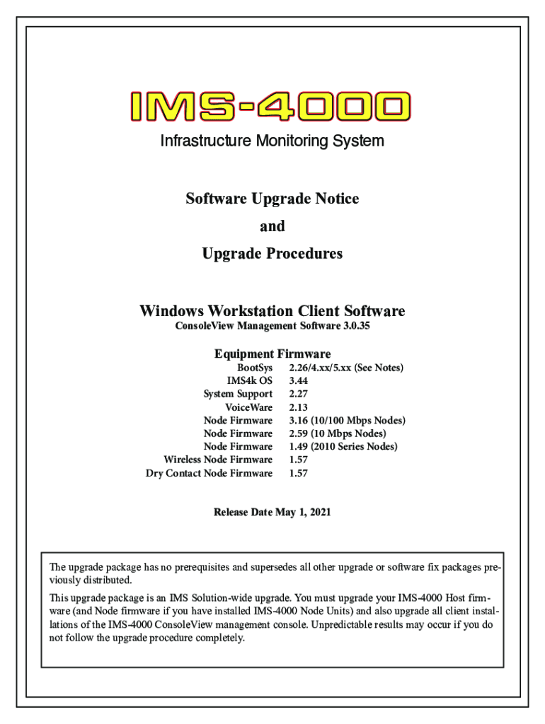 ConsoleView Management Software 3.0.35Equipment FirmwareBootSysIMS4k System SupportVoiceWareNode
