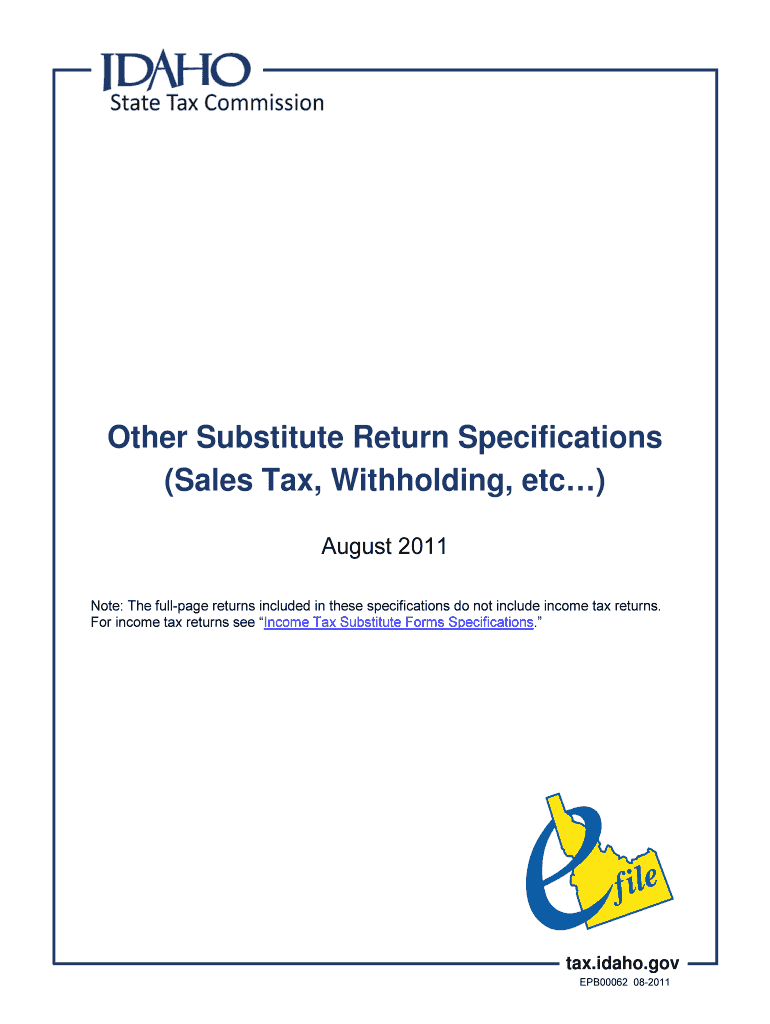 Other Substitute Return Specifications (Sales Tax, Withholding, etc) August 2011 Note: The full page returns included in these specifications do not include income tax returns. For income tax returns