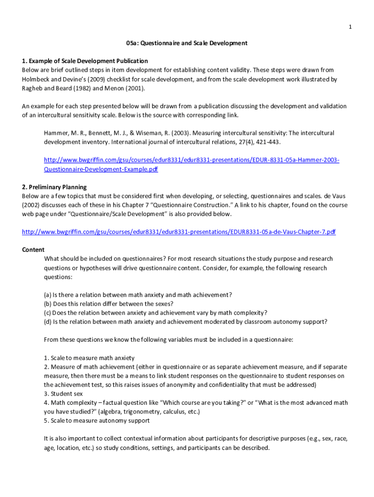 105a: Questionnaire and Scale Development