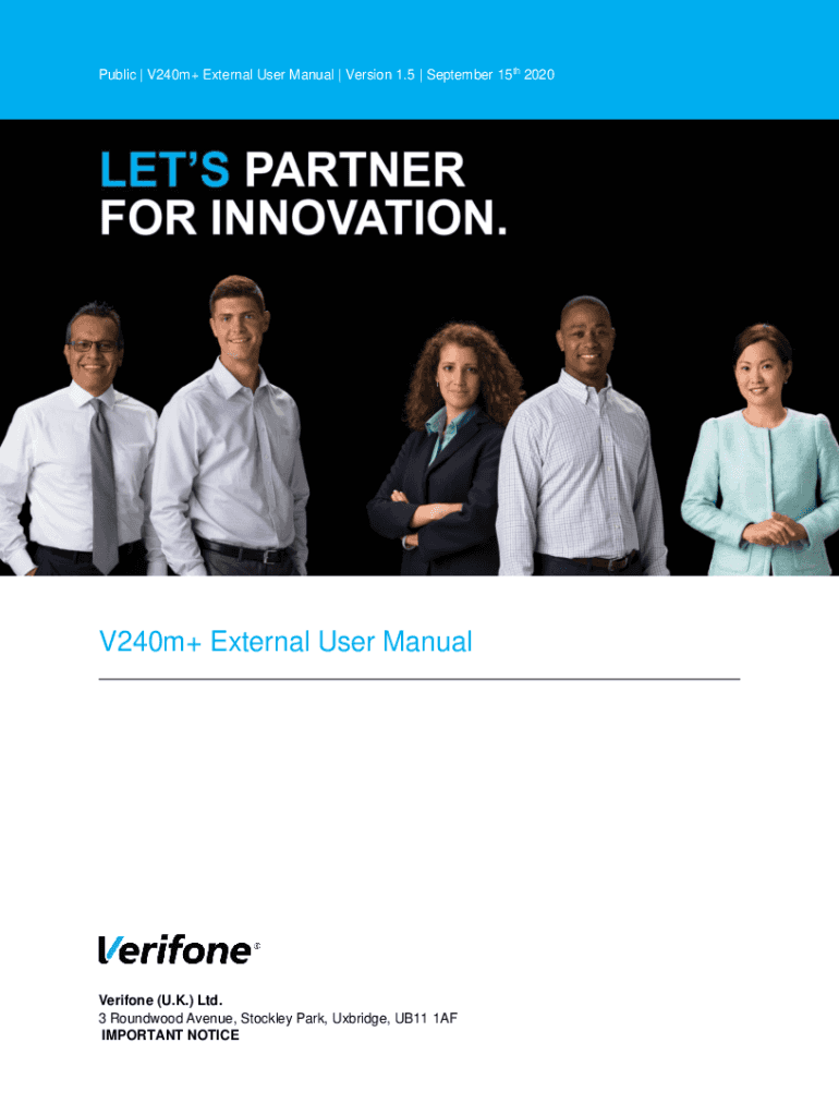Public | V240m+ External User Manual | Version 1.5 | September 15th 2020V240m+ External User ManualVerifone (U.K.) Ltd.