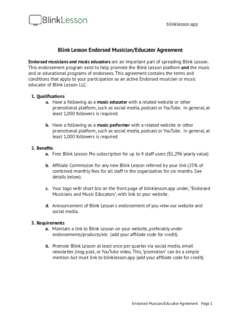 Blinklesson.appBlinkLessonEndorsedMusician/EducatorAgreement