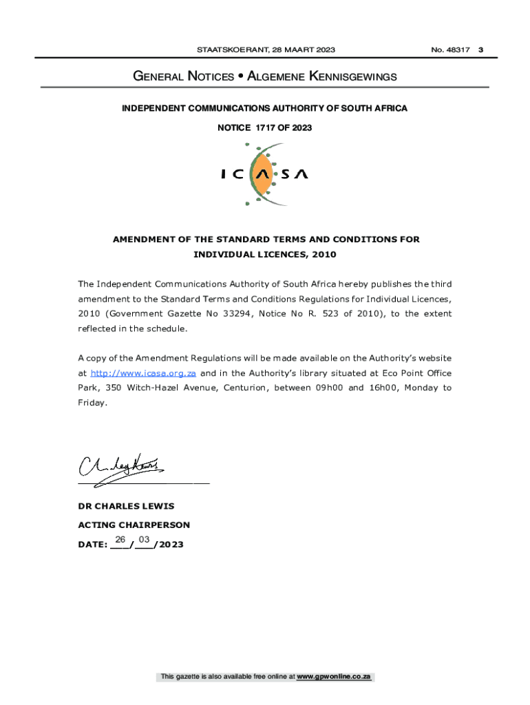 STAATSKOERANT, 28 MART 2023No. 48317GENERAL NOTICES ELEMENT KENNISGEWINGS INDEPENDENT COMMUNICATIONS AUTHORITY OF SOUTH AFRICA NOTICE 1717 OF 2023INDEPENDENT COMMUNICATIONS AUTHORITY OF SOUTH AFRICA
