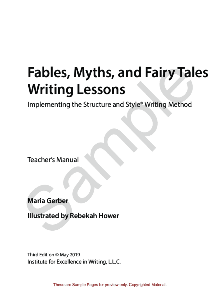 Enables, Myths, and Fairy Tales Writing LessonsmplImplementing the Structure and Style Writing MethodSaTeachers Manual Maria GerberIllustrated by Rebekah Bowerbird Edition May 2019Institute for Excellence