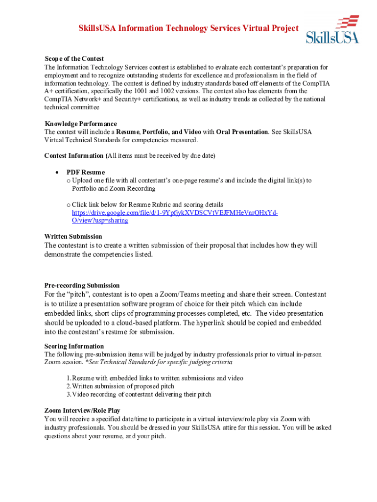 Get the free SkillsUSA Information Technology Services Virtual Project