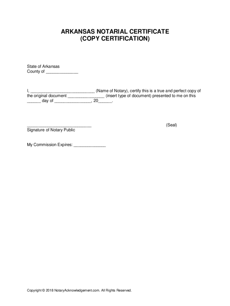 Get the free Arkansas Notary Acknowledgement - Copy Certification