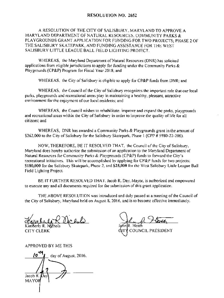 RESOLUTION NO. 2652A RESOLUTION OF THE CITY OF SALISBURY. MARYLAND TO APPROVE A MARYLAND DEPARTMENT OF NATURAL RESOURCES. COMMUNITY PARKS & PLAYGROUNDS GRANT APPLICATION FOR FUNDING FOR TWO PROJECTS: