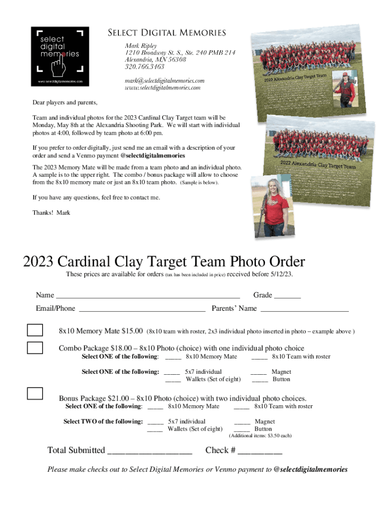 Dear players and parents, Team and individual photos for the 2023 Cardinal Clay Target team will be Monday, May 8th at the Alexandria Shooting Park. We will start with individual photos at 4:00, followed
